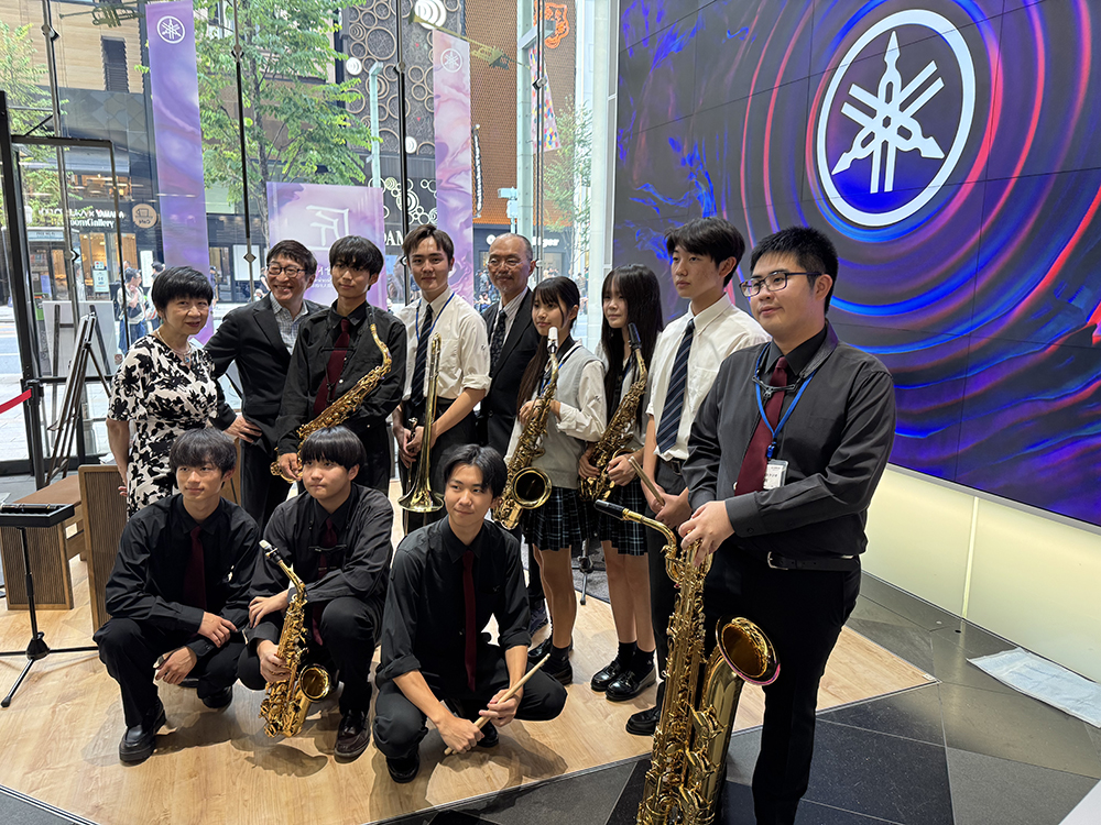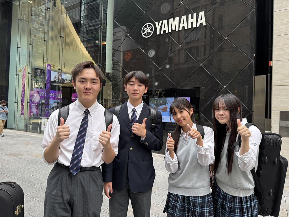 気持ちの良い秋晴れに恵まれた12日日曜日、海外からの人々をはじめ多くの人々が行き交う銀座歩行者天国にあるヤマハ銀座店様でのスチューデントジャズステージinGINZAに参加をさせていただいた。午前中には日本を代表するジャズプレイヤーのピアノ守屋純子先生とベース中村健吾先生にドラム高橋徹先生のクリニックを受講してから、午後より店頭の特設ステージで先生方に演奏のフォローをしていただきながら参加生徒達は思う存分演奏を楽しんだ。また同じく参加した千葉県富里高校様との交流も有意義に過ごしたようである。海外からのお客様も多く、お越しいただきました皆様に心より感謝を申し上げます。生徒達は中間考査前の忙しい時期ではありましたがたくさんの貴重な経験ができたようである。火曜日から中間考査が始まるため、ステージが終わるとすぐに帰宅して勉強に励んだようである。中間考査が終わるといよいよ秋の応援シーズンが始まる。すでに準備は始まっているが野球部やサッカー部の健闘に期待をしたい。皆様のご声援をよろしくお願い申し上げます。